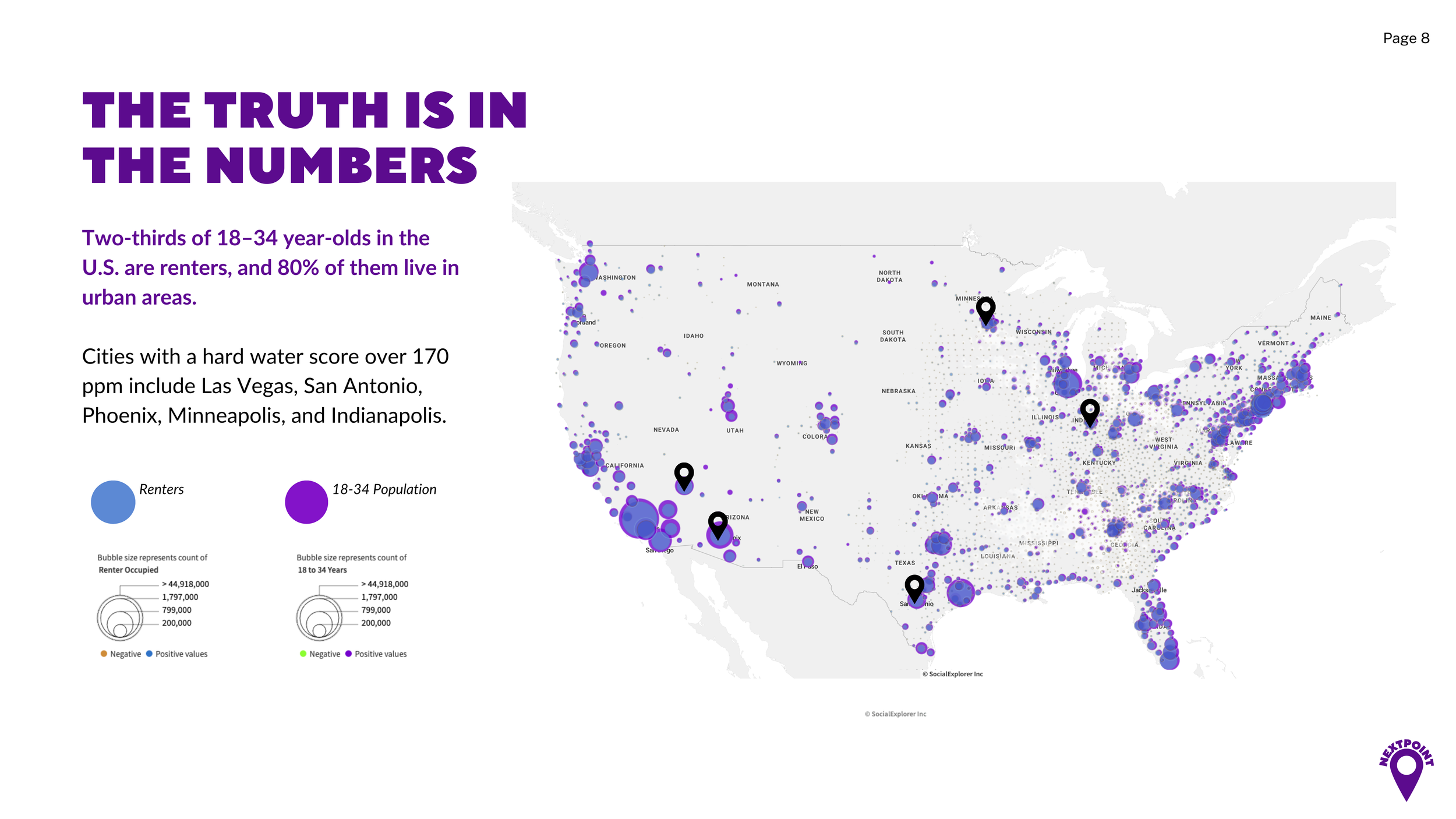 So we cross-referenced where 18–34 year olds live with renter concentration and hard water scores by city.